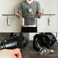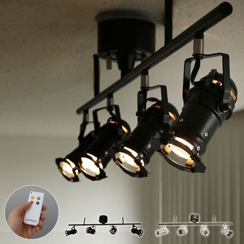 余計な装飾は一切不要と言わんばかりの「無骨さ」が男らしく、また美しさまで感じるクールなスタジオライトの登場です。1灯60Wのスポットライトが4つ並び、自由度の高いアングル調節が可能なので、お部屋に合わせたライティングで雰囲気を演出できます。点灯はリモコン操作で「内側2灯」→「外側2灯」→「全灯」→「消灯」をそれぞれワンタッチで切り替え可能です。スパイスの効いたこの照明はインテリアのアクセントになること間違いナシです。