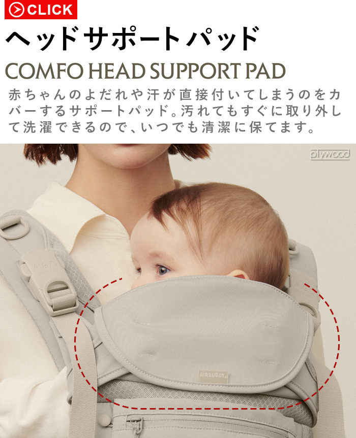 | AIRBUGGY BABY CARRIER COMFO(エアバギー・ベビーキャリア コンフォ) ※旧モデルのエアバギーベビーキャリアにも装着は可能ですが、新モデル コンフォへの装着時と比べてサイズがキツく、上下にずらしにくくなります。 |
