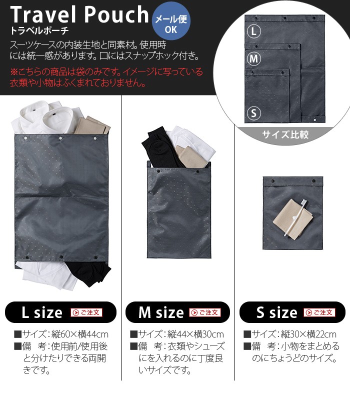 34L/2~4泊、56L/4~6泊、91L/7~9泊 の3サイズ展開。34Lは国内線機内持ち込み可能サイズ※です。