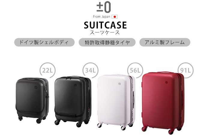 音の静かなスーツケース!特許取得の静穏タイヤ採用。「ちょうどいい」流行に流されすぎず、長く使っていけるモノを適正な価格でお届けする「±0/プラスマイナスゼロ」から、静かで快適な使い心地のスーツケースのご案内です。