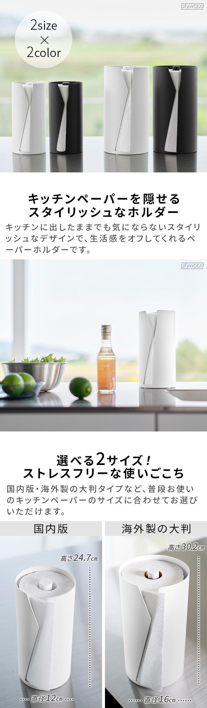| ≪レギュラーサイズ≫ 直径11×幅23cm以内のキッチンペーパーロール ※キッチンペーパーロールのサイズや形状によっては収納できない物もあります。 ≪Lサイズ≫ 直径15×幅28cm以内のキッチンペーパーロール 海外製の大判タイプを収納可能 ※キッチンペーパーロールのサイズや形状によっては収納できない物もあります。 |