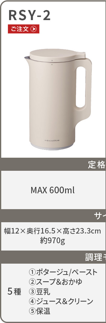| 自動調理ポット RSY-2 | フードプロセッサー コンボ RCP-6 |