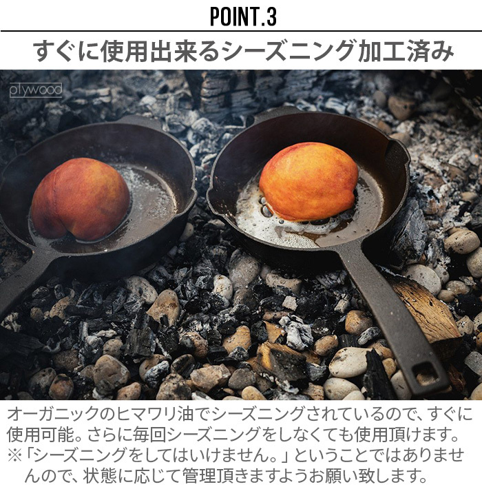 | 鋳鉄製品は熱すると持ち手まで全体が熱くなりますので、必ず鍋つかみなどをご使用下さい。鋳鉄は冷めにくい性質がある為、調理後もご注意下さい。 IH調理器にお使い頂けますが、底面の形状やIH調理器によりご使用頂けない商品もございますので、お使いのIH調理器をご確認下さい。 鋳鉄は重量物です。持ち運びには十分ご注意ください。 熱せられた鋳鉄製品を水で急に冷やしたり、落とすと割れる危険がございます。強い衝撃を与えないでください。 |