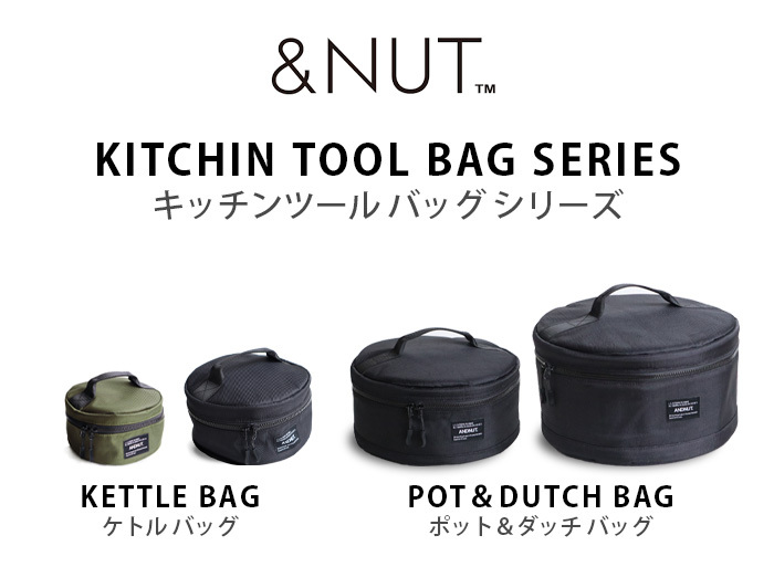 おしゃれでユニークな心くすぐられるデザインが人気のブランド &NUT より、「ケトル収納バッグ」「ポット・ダッチオーブン収納バッグ」のご紹介です。