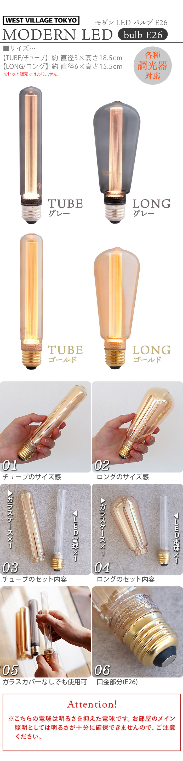 | LONG:(約)直径6×高さ15.5cm TUBE:(約)直径3×高さ18.5cm |