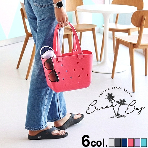 ビーチはもちろんアウトドアやプールなどで汚れても大丈夫!水で洗い流してラフに使えるEVA樹脂のビーチバッグが登場。気にせず砂の上に置けます。大容量なので大量の荷物も、家族分のビーチ用品も思いのまま。専用トレイを装着するとバッグがテーブルに早変わり!ビーチはもちろん、花火大会や運動会、ピクニック、お花見などにも大変便利です。