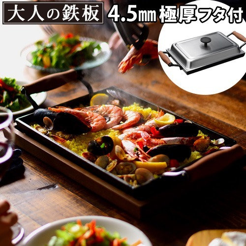 | ・蓋寸法:約幅31×奥行22×高さ6.5cm ・ガス火・IH200V使用可能 ・サビ防止のため、薄く油を塗って保管してください ・食器洗い乾燥機使用不可 ・蓋のつまみは調理中・調理後熱くなります ・無骨な溶接跡に仕上げています。その風合いをお楽しみください |