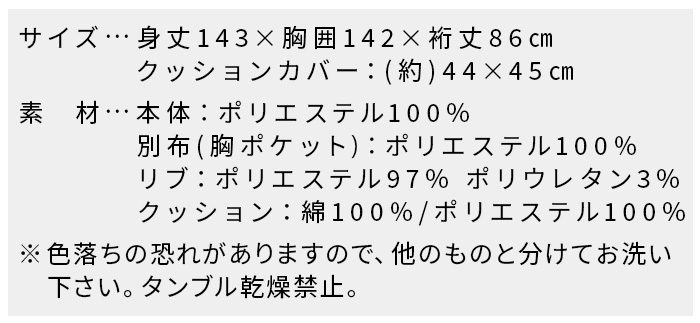 | (約)身丈143×胸囲142×裄丈86cm クッションカバー:(約)44×45cm |