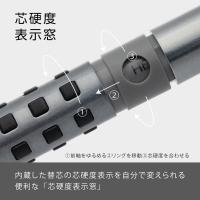 手になじみ、しっかり握れる金属×ラバーグリップ。芯硬度表示窓付き。 大型ラバーノック。