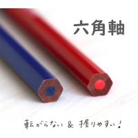 鉛筆と同じように持てる六角軸。転がりにくく、机などからも落ちにくい。