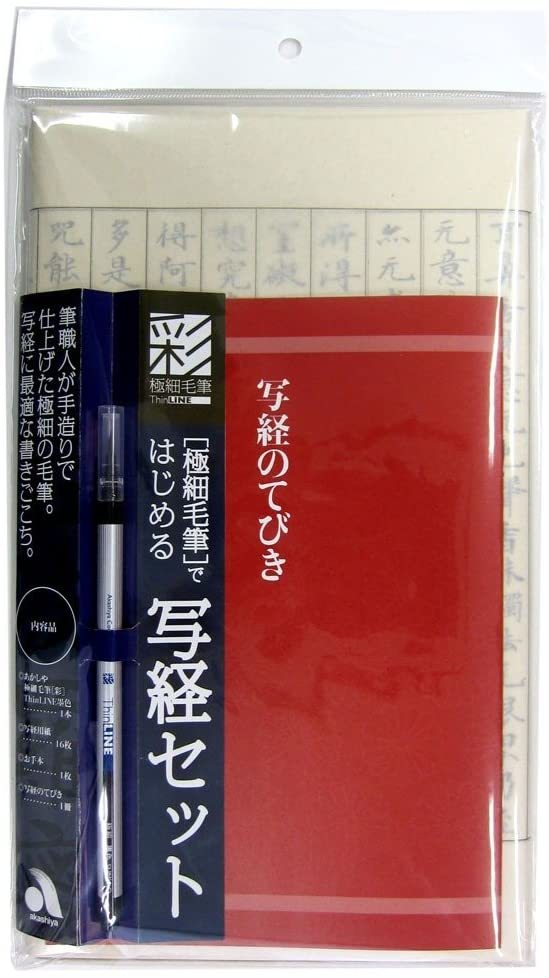 [内容品] あかしや 極彩毛筆[彩]ThinLINE墨色/1本 写経用紙/16枚 お手本/1本 写経のてびき/1冊