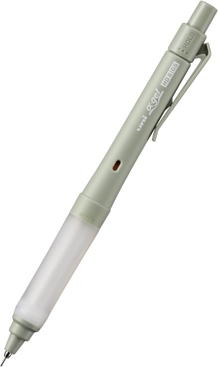 新開発の「ゲルサンドグリップ」の三層構造が生み出すモチッとしたやわらかさとピタッとホールドしたしたにぎり心地で、長時間の使用でも快適に筆記可能です。