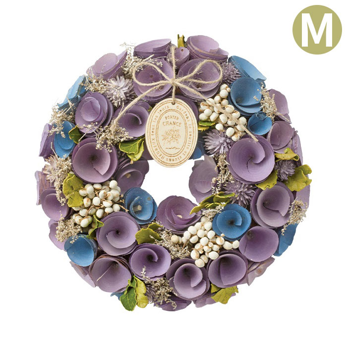 1つのリースの中で、色の濃いものと淡いものを使っているので、ワンカラーでも単調にならず華やかな印象になります。