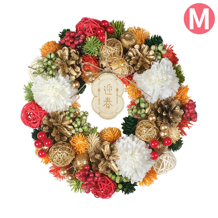 リース フラワーリース 正月飾り 新年 迎春 和風 NYジャパネスクリース M 朱金の御殿 (しゅきんのごてん)