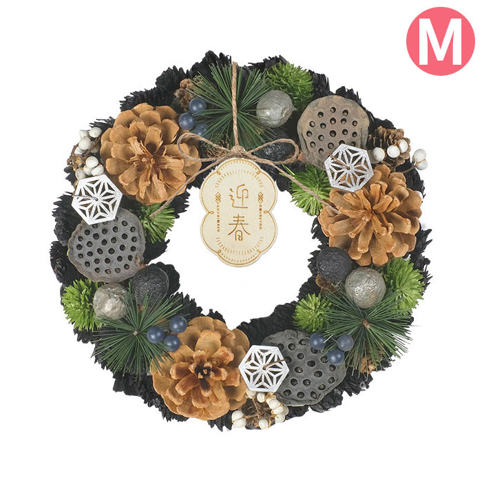 リース フラワーリース 正月飾り 新年 迎春 和風 NYジャパネスクリース M 岩陰の常盤松 (いわかげのときわまつ)
