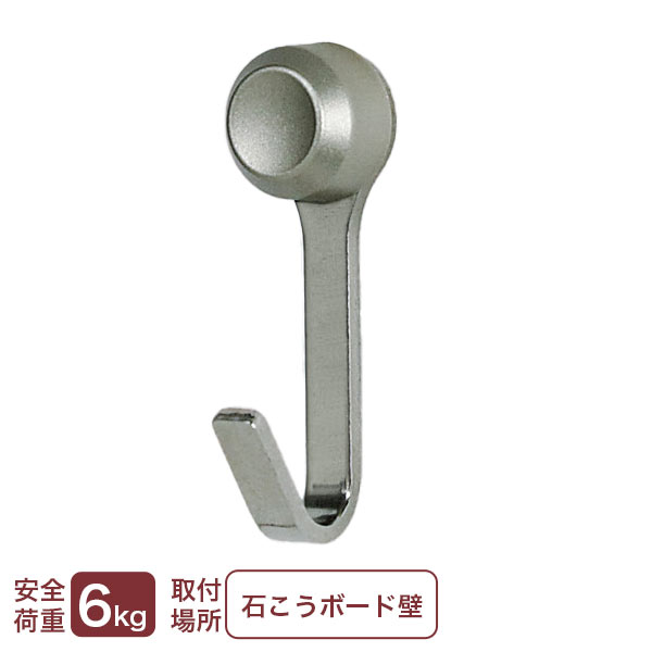 壁掛け フック 石膏ボード 石こうボード壁用フック ニコピンフック シングル シルバー (メール便対応・4個まで)