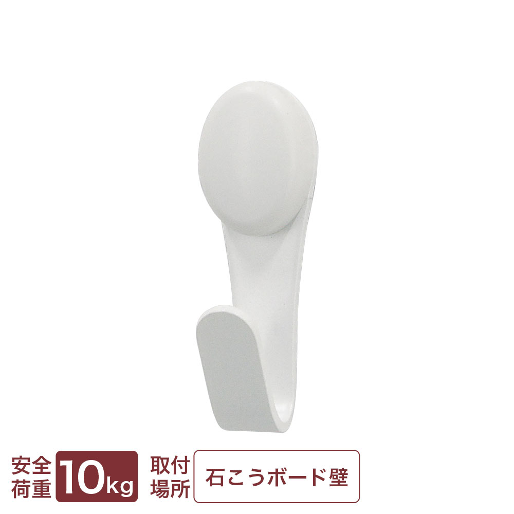 壁掛け フック 石膏ボード 石こうボード壁用フック 剛力フック シングル ホワイト (メール便対応・4個まで)