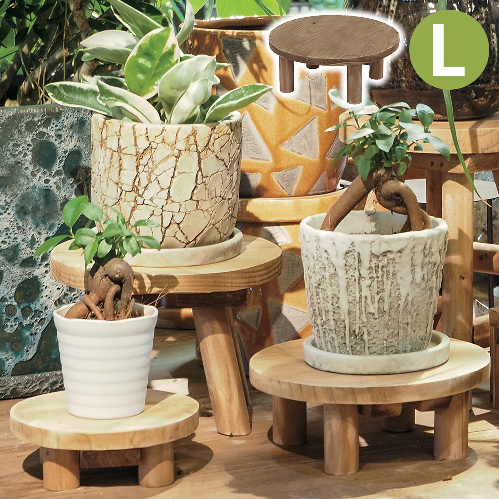 鉢スタンド プランタースタンド 置き台 おしゃれ 木製 ウッドラウンドショートスタンド L