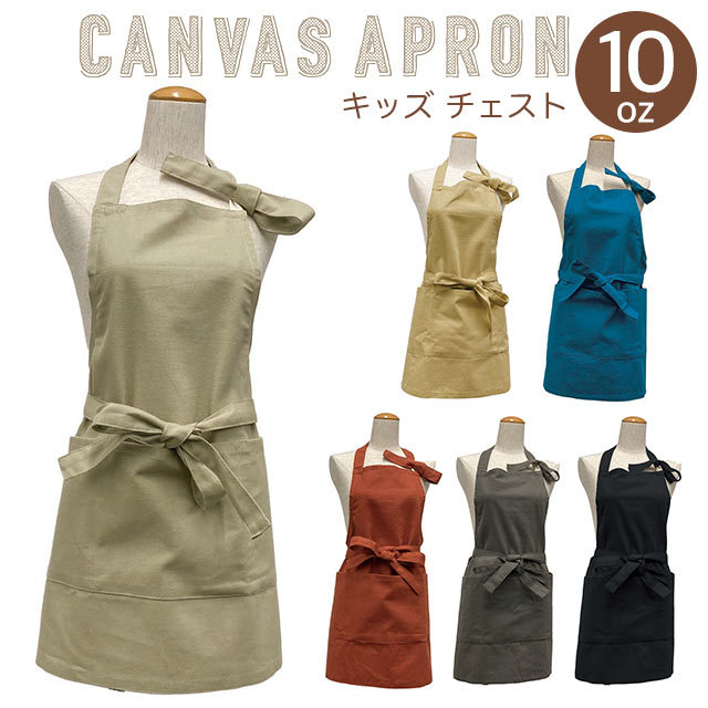 エプロン 首かけ 袖なし 子供用 無地 シンプル おしゃれ キッズチェストエプロン 10oz