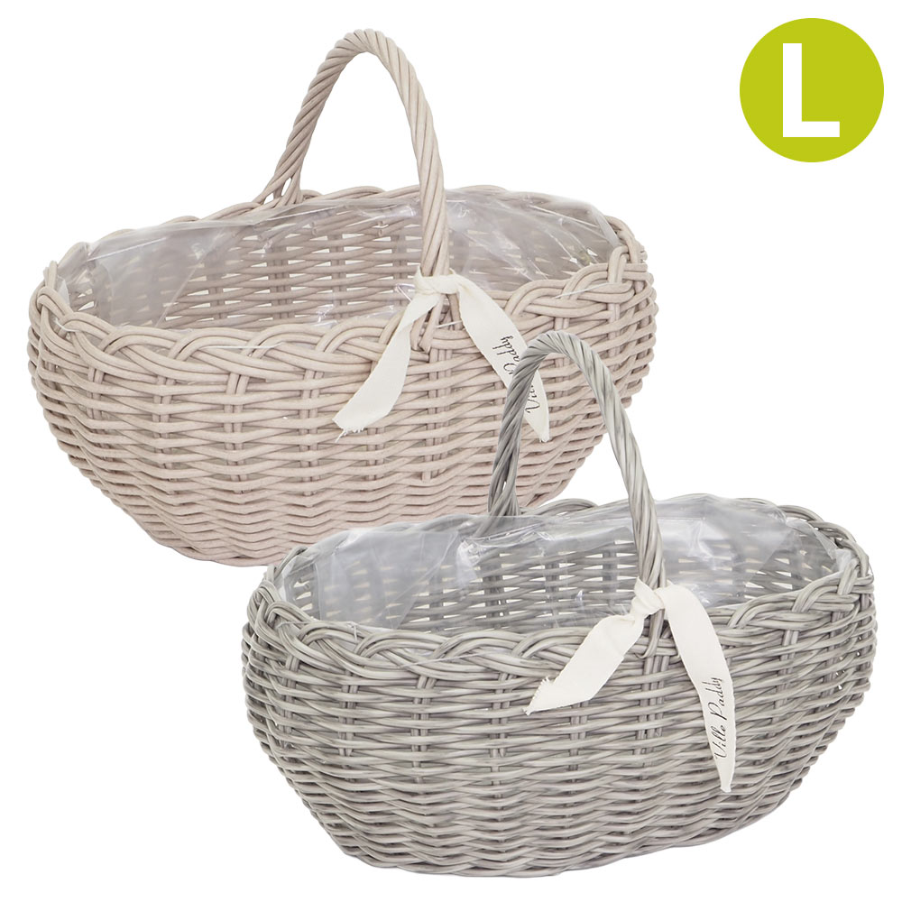 植木鉢 花かご 持ち手付き おしゃれ PPラタンオーバルハンドル L