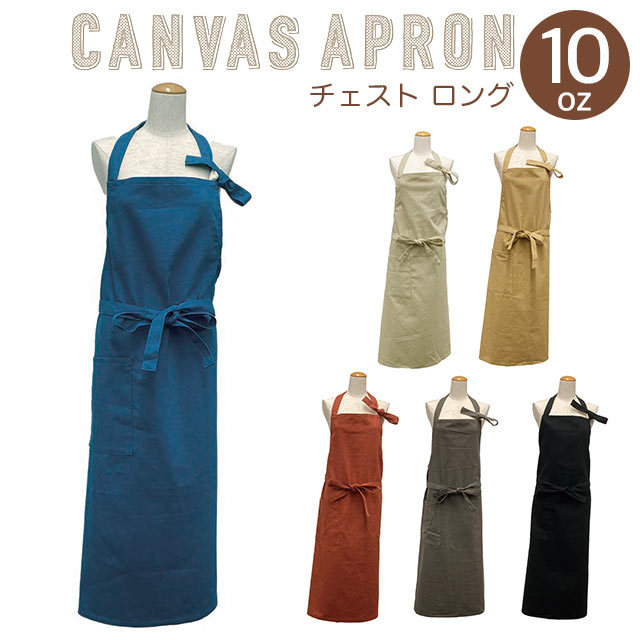 エプロン 首かけ 袖なし 無地 シンプル おしゃれ チェストエプロン ロング 10oz