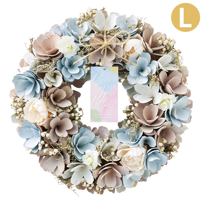 柔らかなピンクブルーの配色が新鮮なリース。新しい春の訪れを感じさせます。