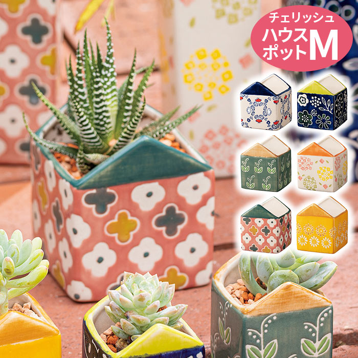 植木鉢 おしゃれ 穴あり 陶器 家型 レトロ 花柄 チェリッシュハウスポット M