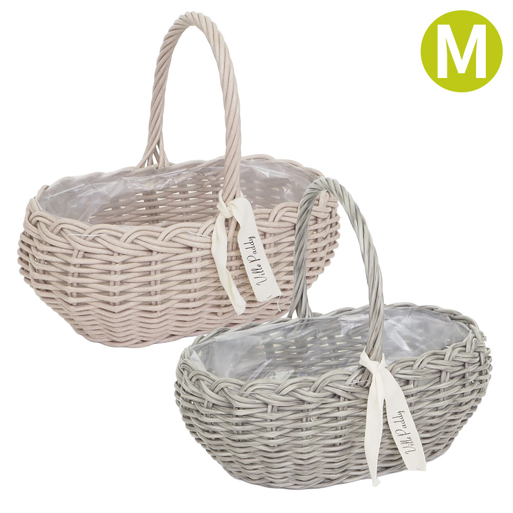 植木鉢 花かご 持ち手付き おしゃれ PPラタンオーバルハンドル M