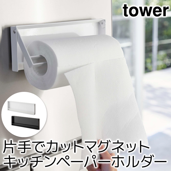 キッチンペーパーホルダー おしゃれ 片手でカットマグネットキッチンペーパーホルダー タワー tower