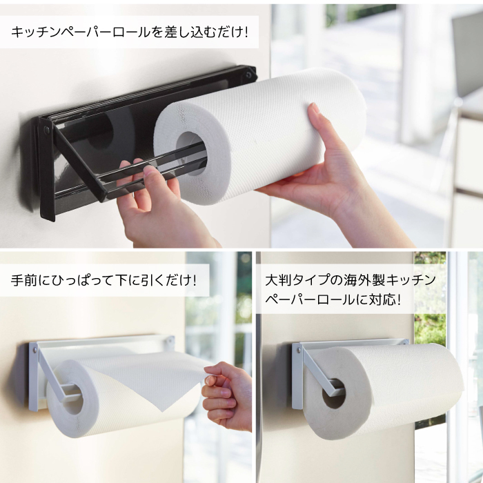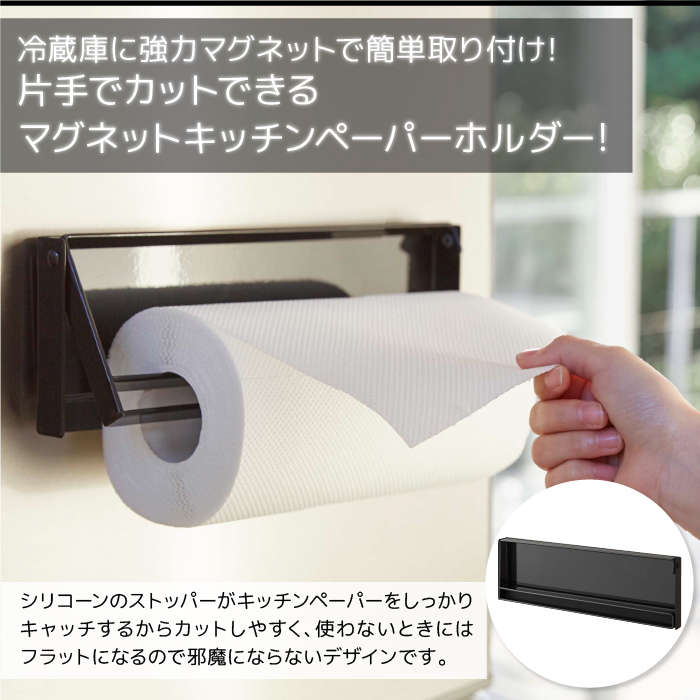 冷蔵庫に強力マグネットで簡単取り付け!片手でカットできるマグネットキッチンペーパーホルダー。