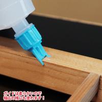 のりの先にガイドが付いており、障子の桟(さん)にガイドをあてて、しぼりながら引いてのり付けできます。