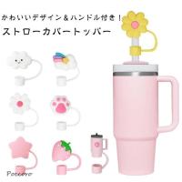 7個入り ストローカバー カップ用 ハンドル付き タンブラー用シリコンストローキャップ ストローカバートッパー 40オンス かわいい 無