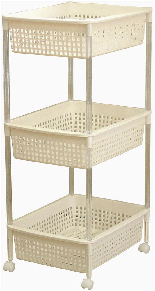 平和工業 バスケットワゴン3段(IV) アイボリー 組み立て簡単 ワゴン 空間の友好活用 キッチンや脱衣所の整理に