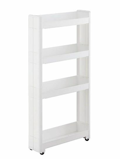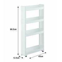 メーカー : 不動技研●わずかなすき間で利用できる小物収納! キッチンラック●すき間の利用で、キッチン周りがしっかり片付く隙間ラック。●食器棚や冷蔵庫、シンクの横のすき間に。●調味料や小物の収納、缶詰め・ビン詰めなど食品のストックなどにも。●まっすぐ動くコロ付きですので、引き出し感覚で出し入れ簡単。●組立て式、工具不要●サイズ(約):幅12.5×奥行45×高さ88.5cm●材質:ポリプロピレン●耐荷重:上段/4kg以下 中段(上)/4kg以下 中段(下)/6kg以下 下段/10kg以下 ※耐荷重は棚板1枚に均等に乗せた場合です。荷重が一部に集中したり、片寄ると変形する恐れがあります。●耐熱温度:100℃ 耐冷温度:-20℃●JANコード:4962191013275