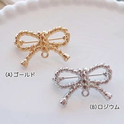 ハンドメイド材料 金属パーツ 縄状リボンブローチ 各1個