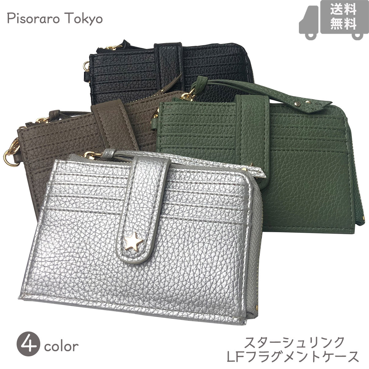 ピソラロ Pisoraro スターシュリンクストラップ付きLファスナーフラグメントケース ミニウォレット ミニ財布 小銭入れ ギフト 4color 送料無料