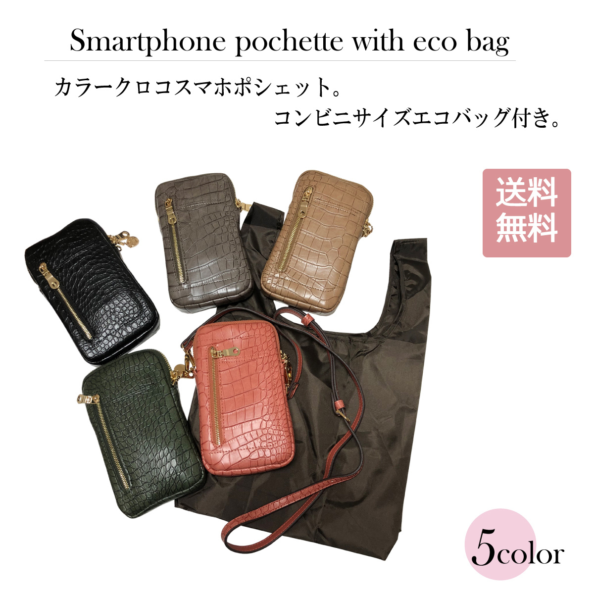 カラークロコ エコバッグ付きスマホポシェット