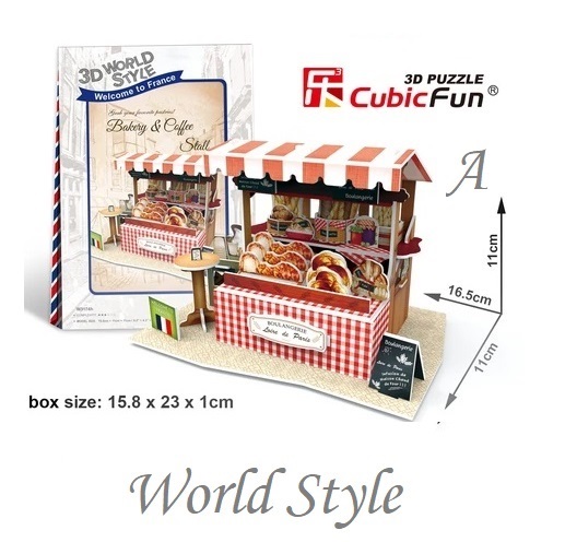 3D立体組み立てパズル World Style フランス ベーカリー&コーヒースタンド 花屋さん クレープ屋さん お届け方法ゆうパケットメール便で2個迄 指定日代引き不可 個数によってお届け方法が変わります。