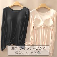 Tシャツ カットソー カップ付き 長袖 インナー レディース 冬 春 ブラジャー 下着 ブラトップ シンプル 無地 ルームウェア ストレッチトップス Uネック ヨガウェア 締め付けない 薄手 大きいサイズ あったか 冬 防寒 保温 楽ちん 部屋着 やわらか生地 授乳 さらさら インナーシャツ 伸縮性 速乾 トップス 長袖インナー ブラトップ 保温 カットソー 長袖インナー シャツの下に着る ロンティー ババシャツ