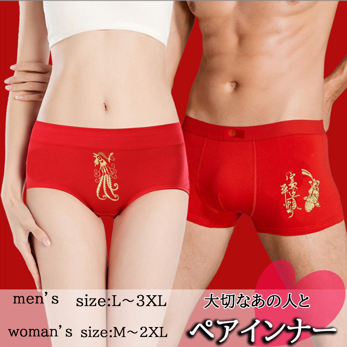 ペアショーツ 赤パンツ ペアパンツ 男女ペア おそろい ペアルック メンズ下着 レディースショーツ ボクサーパンツ 年越し