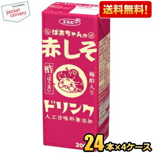 送料無料 エルビー ばあちゃんの赤しそドリンク 200ml紙パック 96本(24本×4ケース) 紫蘇 シソ ジュース 野菜ジュース 爆買