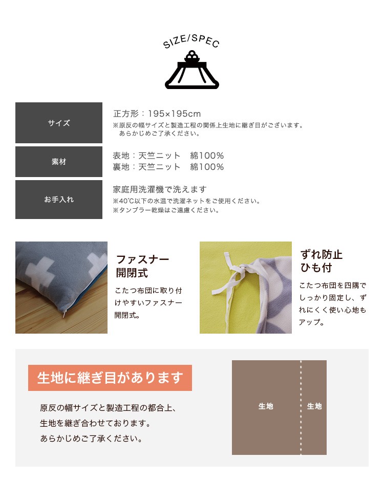 こたつ布団カバー 正方形 195×195cm 綿100% 天竺ニット リバーシブル 洗える シンプル 無地 やわらか コタツカバー 爆買