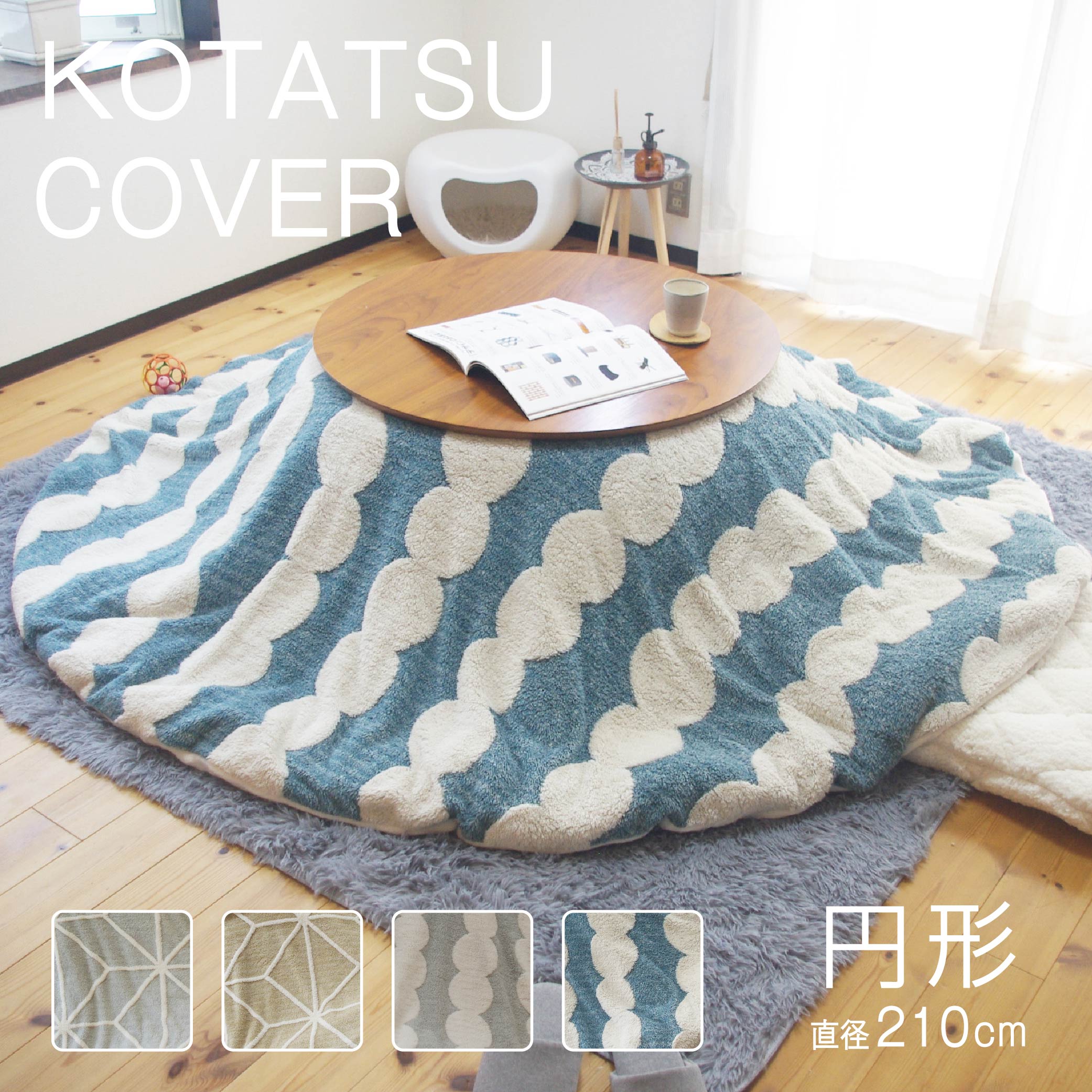 こたつ布団カバー 円形 丸型 直径 210cm 洗える ボア フランネル 起毛 もこもこ ライン柄 幾何柄 だんご柄 北欧 シンプル グレー ベージュ ブルー 汚れ防止