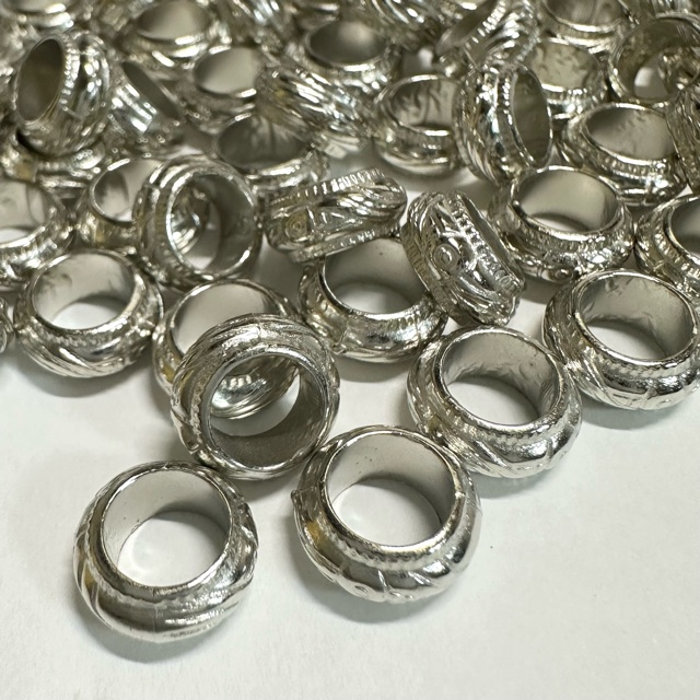 50個 プラスチック スペーサー 大穴 ロンデル ビーズ 柄 シルバー