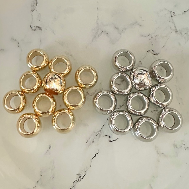 20個 11.5mm 大穴 プラスチック ビーズ シルバー or ゴールド
