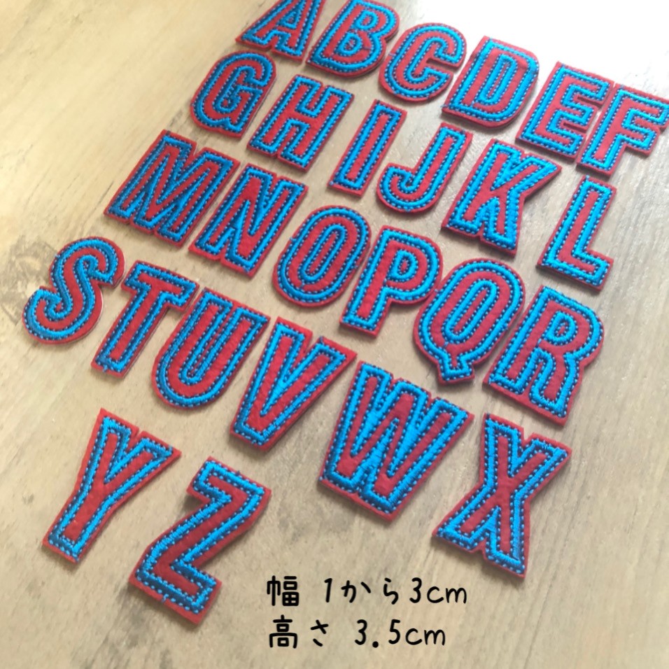 レッド×ブルー アルファベット ワッペン 1枚