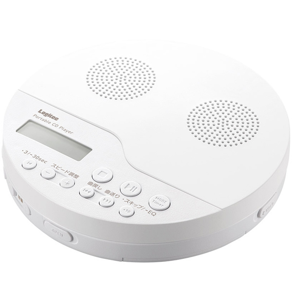 Logitec LCP-PAPS02WH ポータブルCDプレーヤー/ リモコン付属/ 有線対応/ スピーカー機能付/ ホワイト