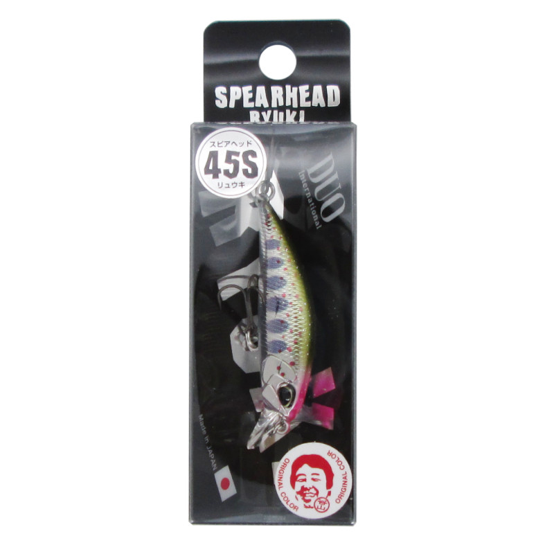 【デュオ/DUO】扁平低重心ボディがキレのあるアクションレスポンスを生み出すヘビーウエイトシンキングミノー『スピアヘッド リュウキ』。アクションの立ち上がりが早く、ロッドワークに素早く反応し短い移動距離での連続トゥイッチを演出。本流の強く複雑な流れにも対応する高いスイミングパフォーマンスを備えます。合わせて、キャスト時の飛行姿勢のブレを無くし、抜群の飛距離と優れたアキュラシー性能を実現。狙ったスイートスポットを確実に撃ち抜きます。リュウキ45Sは水量の乏しい源流部や水深の無い里川の攻略にも最適。小粒ながら比重が高く、キャスト性能に優れるので本流にも十分対応可能です。[SPEARHEAD RYUKI 45S]