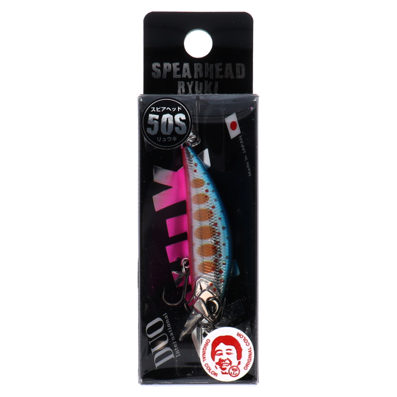 DUO ●カラー:ブルピンアマゴ ●全長:50mm ●自重:4.5g ●タイプ:重心固定・シンキング ●フック:#12 ●リング:ラインアイ#1・フックアイ#1 ●釣り方、フィールド:淡水ルアー ●代表対象魚:トラウト(鱒)|【デュオ/DUO】キャスト性能とアクションレスポンスを高次元で両立!扁平低重心ボディがキレのあるアクションレスポンスを生み出すヘビーウエイトシンキングミノー「スピアヘッド リュウキ」。アクションの立ち上がりが早く、ロッドワークに素早く反応し短い移動距離での連続トゥイッチを演出。本流の強く複雑な流れにも対応する高いスイミングパフォーマンスを備えます。合わせて、キャスト時の飛行姿勢のブレを無くし、抜群の飛距離と優れたアキュラシー性能を実現。狙ったスイートスポットを確実に撃ち抜きます。リュウキ50Sは抜群のキャスト性能と優れたアクションバランスを備え、渓流から本流まで広範囲を思い通りに攻略します。[SPEARHEAD RYUKI 50S] TKM-16-01-03