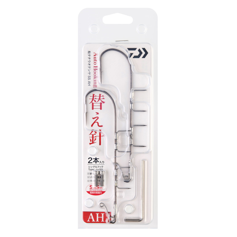 ダイワ ●入数:2 ●釣り方、フィールド:船釣り(浅場) ●代表対象魚:タチウオ(太刀魚)|船タチウオテンヤSS AH専用の替え針(交換フック)が登場。コンプリートタイプにセットされている針と同じサイズの針、ネジ2、六角レンチがついたセットアイテム。針先が傷んだり、錆てきてしまった等のシチュエーションで交換可能のカスタムパーツ。[FUNE TACHIUO TENYA SS AH CHANGE HOOK] TKM-12-26-90